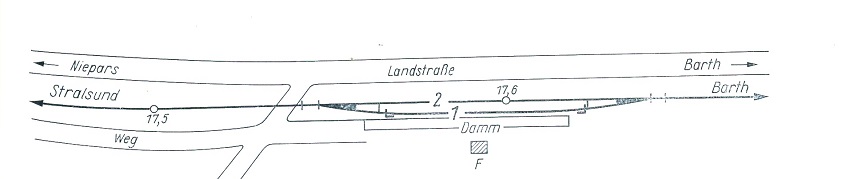 Landstraße Barth - Niepars (heutige L 21) und besaß neben dem Streckengleis ein kurzes Ladegleis