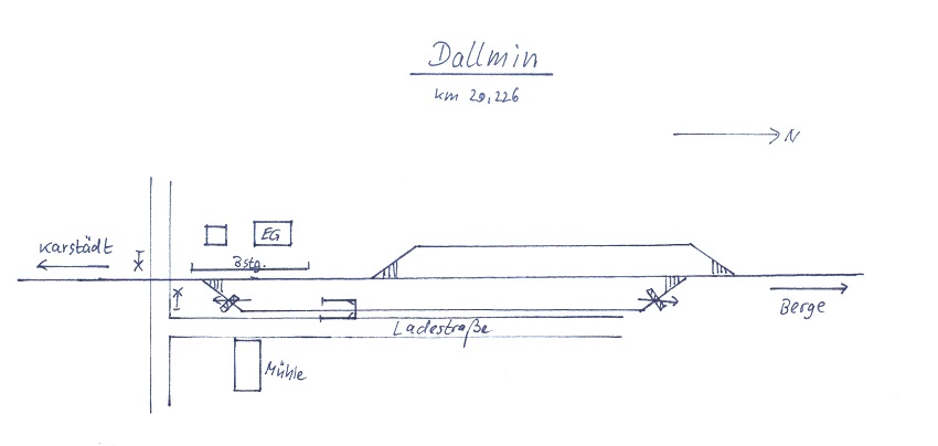 Kurz hinter dem Überweg zweigte ein Ladegleis ab, an dem ein Lademaß stand. Hinter
