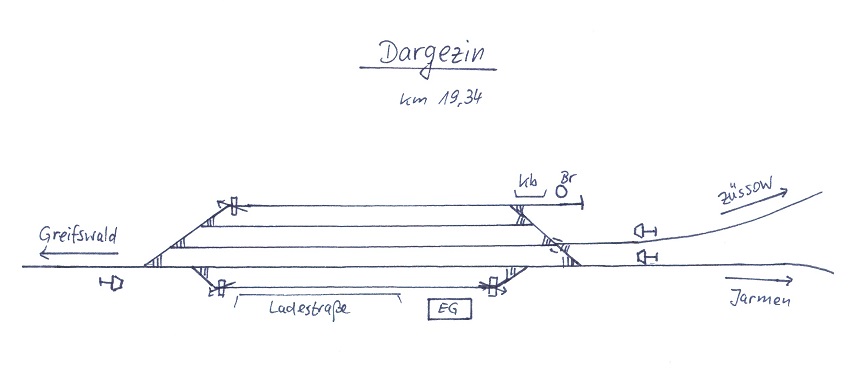 Die in Dagezin abzweigende Strecke nach Züssow folgte dieser Straße weiter auf der linken Seite. |