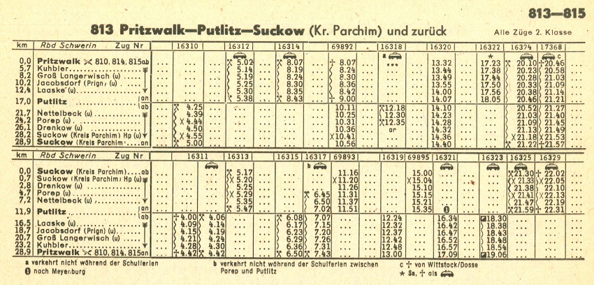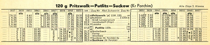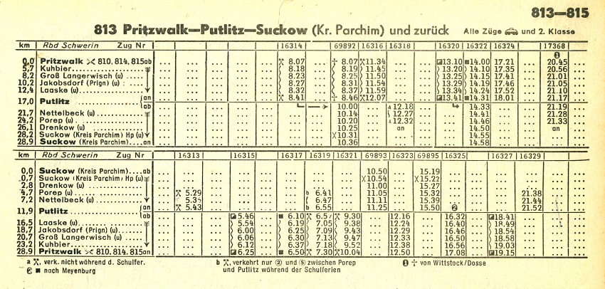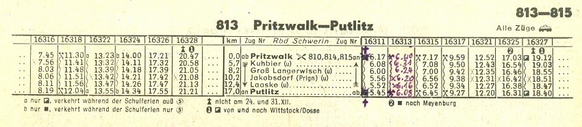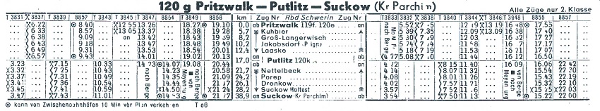 | Fahrpläne Pritzwalk - Putlitz - Suckow (Kr Parchim) - Parchim |