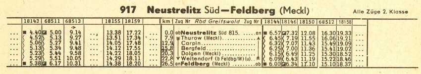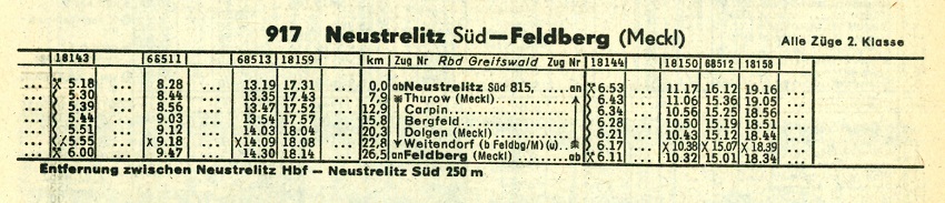 | Fahrpläne Neustrelitz Süd - Feldberg (Meckl) |