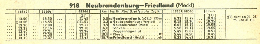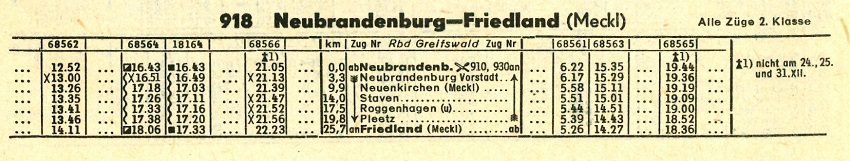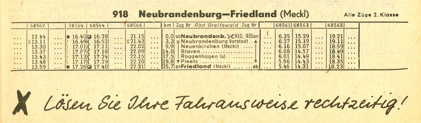 | Fahrpläne Neubrandenburg - Friedland (Meckl) |