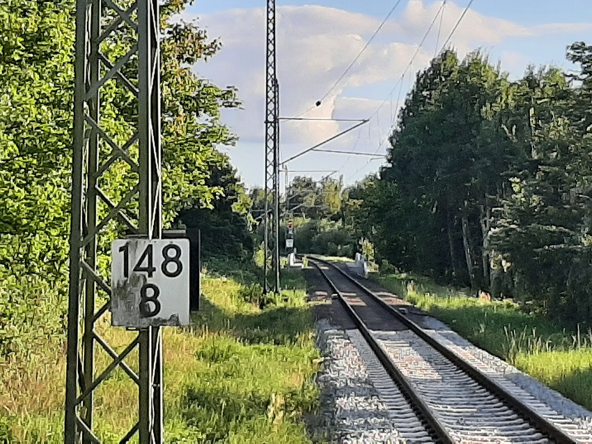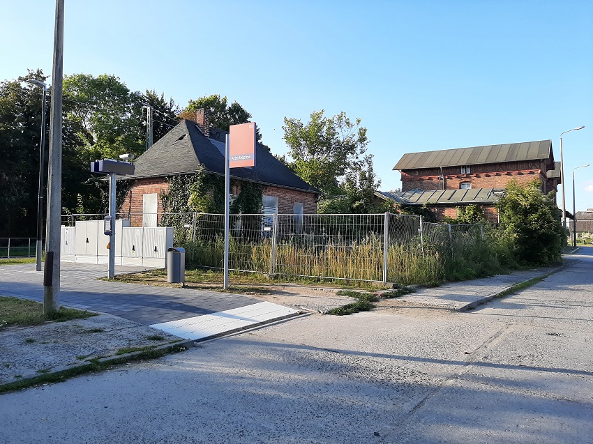 | Nach links verlief einst das Anschlussgleis zum ehemaligen ACZ. Die