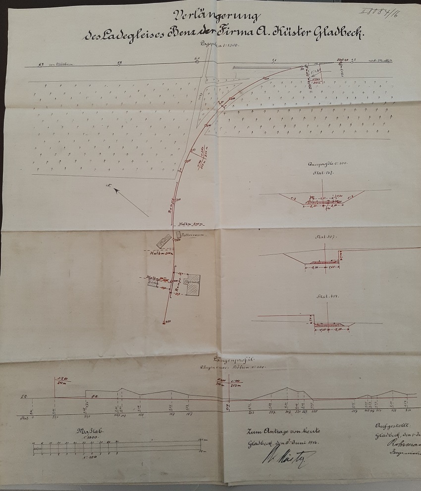 im zusagenden Sinne zu entscheiden." Daraufhin schreibt die Ludwigsluster Bauinspektion IV nach Schwerin, dass der Einbau einer Waage möglich, der Betrieb aber umständlich und kostspielig wäre. Die Bedienung der Waage wäre nur in der großen Zugpause zwischen den Zügen 102 und 105 möglich, weil nur dann eine Lokomotive von Lübtheen aus mit Bedienpersonal nach Benz fahren könnte. Die Lok müsste dann ja auch die Wagen verschieben. Die Generaldirektion lehnt daraufhin den Einbau der Waage ab und teilt die Entscheidung der Firma mit. Diese antwortet am 9. November wie folgt: "Ich bekenne mich hierdurch zum Empfang Ihres Geehrten vom 24. v. Mts. und erlaube mir höfl. zu erwidern, daß mein Antrag nicht dahin ging, daß eine Gleiswage an meiner Ladestelle Benz bei Alt-Jabel eingebaut werden möchte, sondern es lag lediglich in meiner Absicht, Sie um Herrichtung einer Wage auf der Station Alt-Jabel zu bitten. Die Schwierigkeiten und hohen Kosten, die mit der Bedienung der Wage, falls diese an der Ladestelle Benz errichtet würde, verbunden sein würden, würden somit wegfallen und dürften diese kein Grund zur Ablehnung meines diesbezüglichen Antrages mehr sein. Mit der Anlegung der Gleiswage in Alt-Jabel würden all die mir durch die Verwiegung meiner in der Weiche Benz verladenen Waggonsendungen in Mallis und das Abwerfendes evtl. ermittelten Uebergewichtes entstehenden Widerwärtigkeiten behoben sein, und bitte ich Sie deshalb nochmals, meinem Antrages gütigst entsprechen zu wollen und eine Gleiswage tunlichst bald in Alt-Jabel einbauen zu lassen.   In erg. Erwartung Ihres … zustimmenden Bescheides empfehle ich mich Ihnen und zeichne Hochachtungsvoll … A. Küster Langhoff"   Ein Bahnbeamter notierte daraufhin auf dem Schreiben der Firma, dass dieser frei zu antworten ist: Wenn in Alt Jabel eine Gleiswaage vorhanden wäre, müsste man die beladenen Wagen aus Benz zum Wiegen in Alt Jabel aus den Zügen aussetzen. Andernfalls würden die Züge unzulässig verspätet werden. Außerdem würden die Wagen dann erst mit dem nächsten Zug oder gar erst am Folgetag weitbefördert werden können, was den Wagenumlauf stark beeinträchtigen würde. Zusätzlich müsste extra eine Lokomotive nach Alt Jabel fahren, um dort die schweren Wagen zu verschieben, was das örtliche Personal nicht durchführen kann. Fraglich ist, ob überhaupt eine Lok dafür zur Verfügung stehen würde. In diesem Fall wären die Betriebskosten so hoch, dass sich der Einbau einer Waage verbiete. Es standen auch keine Mittel für eine Gleiswaage und deren Einbau in Alt Jabel zur Verfügung. Bedauernswerterweise konnte man dem Antrag der Firma nicht entsprechen. Stattdessen bot man an, das Ladegleis in Benz um 40 bis 50 Meter zu verlängern, um hier eine Gleiswaage für den Firmengebrauch einzubauen, die dann auch von dieser bedient werden müsste. Allerdings würde man das ermittelte Gewicht bahnseitig nicht anerkennen können, sodass die Wagen nochmals in Malliß gegen Gebühr gewogen werden müssten. Dadurch könnten jedoch die Nachteile vermieden werden, die durch das Abwerfen des Mehrgewichtes der Frachten entstehen würden.   Nachdem die Firma im Wald nahe der Ladestelle Benz ein Sägewerk errichtet hatte, kontaktierte sie die Großherzogliche Forstbehörde, ob sie den Bau eines Anschlussgleises von der Ladestelle zum Sägewerkt gestatten würde, wovon diese im Prinzip nicht abgeneigt war.   Im April 1916 wandte sich die Firma deshalb erneut an die Generaldirektion in Schwerin und bat ergebenst "... durch die zuständige Bahnmeisterei die Linienführung abmessen zu lassen, damit die Forstbehörde, die zunächst sehen will, wo ihr Gelände durchschnitten wird, sich wegen der Genehmigung entschliessen kann. Wenn Sie durch die Bahnmeisterei auch einen vorläufigen Kostenanschlag für die Ausführung der Gleisverlängerung könnten aufstellen lassen, wäre mir dies sehr erwünscht.". Der Bahnmeister steckte die Trasse mit einem Krümmungshalbmesser von 200 m vorläufig ab, sodass eine Verlängerung des bestehenden Anschlussgleises möglich wurde. Ein erstellter Absteckungsplan musste jedoch vor Baubeginn noch von einem Geometer (Vermesser) geprüft werden. Die Bauinspektion IV in Ludwigslust teilte der Firma mit, dass sie die Bauausführung nicht übernehmen könne, worauf die Firma die Arbeiten selbst durchführen wollte. Die Generaldirektion teilte der Firma mit, "daß der Absteckung ein genauer Entwurf für das Anschlußgleis nicht zu Grunde hat und daß Sie daher für die Ausführung des Gleises nicht verbindlich und auch nicht als unsere Genehmigung zur Herstellung des Anschlußgleises anzusehen ist. Die Genehmigung würden wir unter nachstehenden Bedingungen erst aussprechen können, wenn die Ausführbarkeit des Gleises in einem genauen Entwurf nachgewiesen ist. Einen solchen Entwurf haben Sie in Einhalt der Bestimmungen in § 6 (3) der dem Anschlußvertrag angehefteten Allgem. Beding. aufzustellen und in dreifacher Ausfertigung zur Genehmigung vorzulegen." Im Juni liefert die Firma die Zeichnung nach und bittet ergebenst, die Ausführung genehmigen zu wollen. |