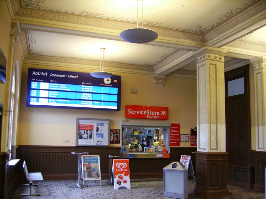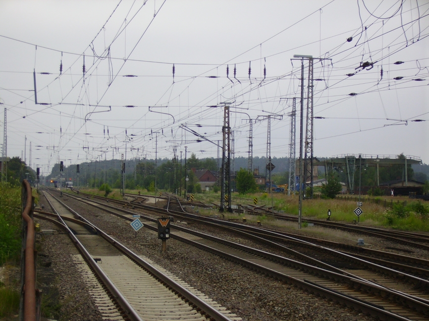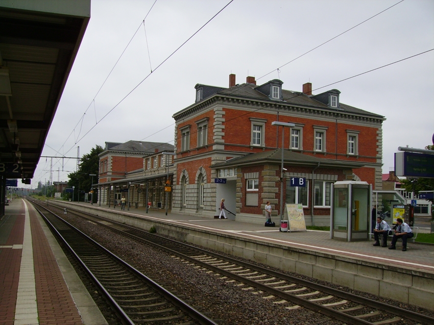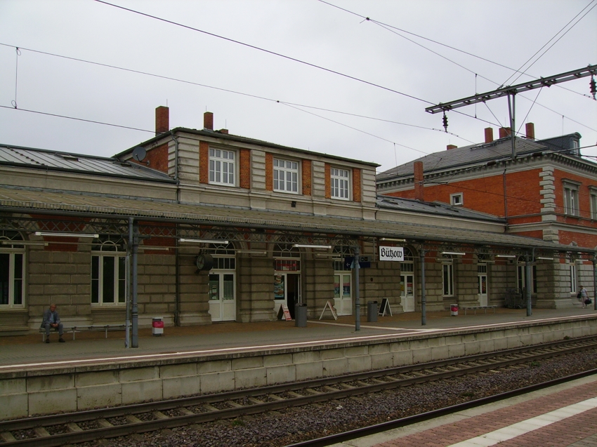 Kriminalkollegium ein, das auch nach 1838 dafür sorgte, das die Haftanstalt Dreibergen gebaut wurde. 1849 wurde der erste Bahnhof südöstlich von Satdt und Warnow errichtet, der an der zur gleichen Zeit in Bau befindlichen Strecke von Rostock über Bützow nach Güstrow lag. Der Verlauf der damaligen Strecke von Bützow aus in Richtung Güstrow ist auf Satellitenbildern noch sehr gut zu erkennen. Sie ist heute ein nutzbarer Weg. Die Strecke verlief (wie heute) von Nordosten kommend in einem großen Bogen in Richtung Südosten und traf dann südlich von Zepelin im Bereich des heutigen Bahnübergangs auf die jetzige Trasse nach Güstrow. Als die Strecke von Kleinen nach Bützow gebaut wurde, ergab sich bei der Einführung in den Bahnhof eine Keilsituation. Zur Betriebsaufnahme 1850 wurden zwei Wärterbuden errichtet. Damit einher gung der Bau eines Lokschuppens, einer Kohlenbanse und Wasserstation sowie eines Güterschuppens und von Rangiergleisen. Das Bahnhofsgebäude lag nun zwischen den beiden Strecken. Vorrang hatte seinerzeit der durchgehende Verkehr auf der Strecke Rostock - Güstrow. Ein durchgehender Zugverkehr war somit nur zwischen Kleinen und Rostock sowie Güstrow und Rostock möglich. Um den Reisenden das Umsteigen zu ersparen, wurden teilweise Kurswagen eingesetzt und in Bützow umrangiert. 1855 wurde eine Werkstatt fertig gestellt, die von der bekannten Firma Alban aus Plau ausgestattet wurde. Bereits 1873 gab es erste Überlegungen zum Umbau des Bahnhofs, um auch einen durchgehenden Verkehr von Lübeck nach Stettin zu ermöglichen. Verschiedene Varianten wurden erstellt, die teilweise aber auch keine sinnvolle Bahnhofsgestaltung ergeben hätten. So wurde u.a. ein Gleisdreieck erwogen mit einem neuen Bahnhofsgebäude in der Mitte und recht weit auseinanderliegenden Bahnsteigen. Schließlich entschied man sich, die Strecke aus Kleinen kommend zu belassen und die Strecke nach Güstrow zu brechen und in einem engen Bogen in Richtung Nordosten bis nach Zepelin zu bauen. Am 4. April 1882 waren die Umbauarbeiten abgeschlossen. Gleichzeitig wurde das heutige, sehr repräsentative Empfangsgebäude errichtet, in dem Diensträume, eine Gaststätte und Wohnungen eingerichtet wurden. Auch ein hochherrschaftliches Zimmer gab es. Das alte Empfangsgebäude wurde abgerissen, um weitere Betriebsgleise bauen zu können. Außerdem wurde ein neuer Ringlokschuppen errichtet, denn in Bützow wurden planmäßig die Lokomotiven der Ost-West-Strecke gewechselt. Durch den Umbau des Bahnhofs war nun aber kein durchgehender Verkehr Rostock - Güstrow mehr möglich. Deshalb entschied man sich zusätzlich für den Neubau einer Strecke von Güstrow nach Schwaan, um den Durchgangsverkehr auf dieser Relation wieder zu ermöglichen. Beide Strecken haben bis heute noch so Bestand. 1934 wurden die beiden Zwischenbahnsteige durch einen Inselbahnsteig ersetzt, zu dem man nun durch eine Unterführung gelangt. Dafür wurde am Empfangsgebäude ein stilechter Anbau für den Treppenabgang errichtet. 1944 wurde Bützow zum Ausweich-Bw für das Bw Güstrow mit einer weiteren Kohlenbanse, zwei Ausschlackgruben und einer Acetylen-Anlage für die Signal- und Wagenbeleuchtung aufgerüstet. Nach Kriegende 1945 wurden das zweite Streckengleis von Bad Kleinen bis Teterow sowie die bislang eingleisig gebliebene Strecke nach Schwaan als Kriegsreparation abgebaut. In den 1950er Jahren wurden die nun nicht mehr benötigten Bw-Anlagen neuen Verwendungszwecken zugeführt. So nutze z.B. die Bahnmeisterei Teile der Anlagen später für ihre Großgeräte. Später entstand daraus der bekannte Gleisbaubetrieb 81. Die aus dem Jahr 1874 stammende Güterwagenwäsche wurde erweitert, um jährlich rund 4.000 Wagen waschen und entseuchen zu können. Sie war bis zur Einstellung der Viehtransporte nach der politischen Wende in Betrieb. Am 5. Oktober 1952 wurde die Strecke nach Schwaan wieder nach dem Neuaufbau in Betrieb genommen. Bis 1975 wurde auch das zweite Streckengleis zwischen Bad Kleinen und Schwaan wieder aufgebaut. 1985 entstand das Oberbauwerk (Obw) Bützow mit umfangreichen Gleisanlagen am westlichen Bahnhofsende. Nach 1990 ging der einst starke Güterverkehr fast bis auf Null zurück. Viele Anlagen wurden nun nicht mehr genutzt und abgerissen. Heute wird auf der Ladestraße gelegentlich noch be- und entladen. Die Firma Vossloh betreibt mit dem Rail Center Bützow (RCB) den Gleisanschluss des ehemaligen Obw. [Quelle: Lothar Schulz; Buch "Friedrich-Franz-Eisenbahn in Mecklenburg"] |