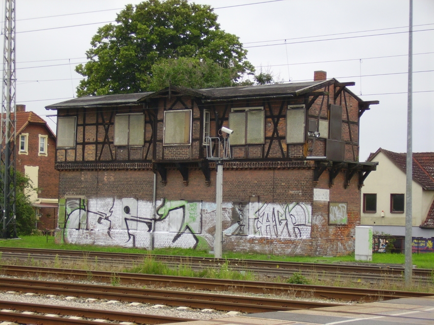| ehemaliges Stellwerk B2 (Bauart Stahmer) in Richtung Schwaan und Güstrow |