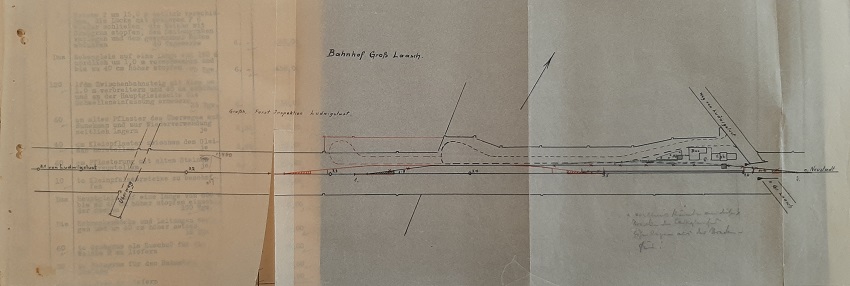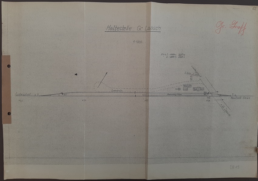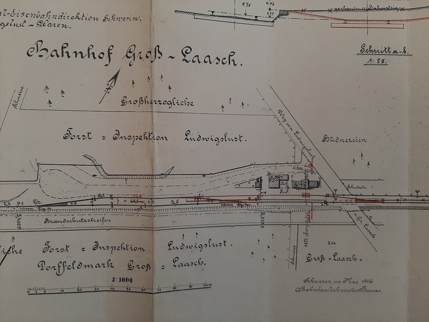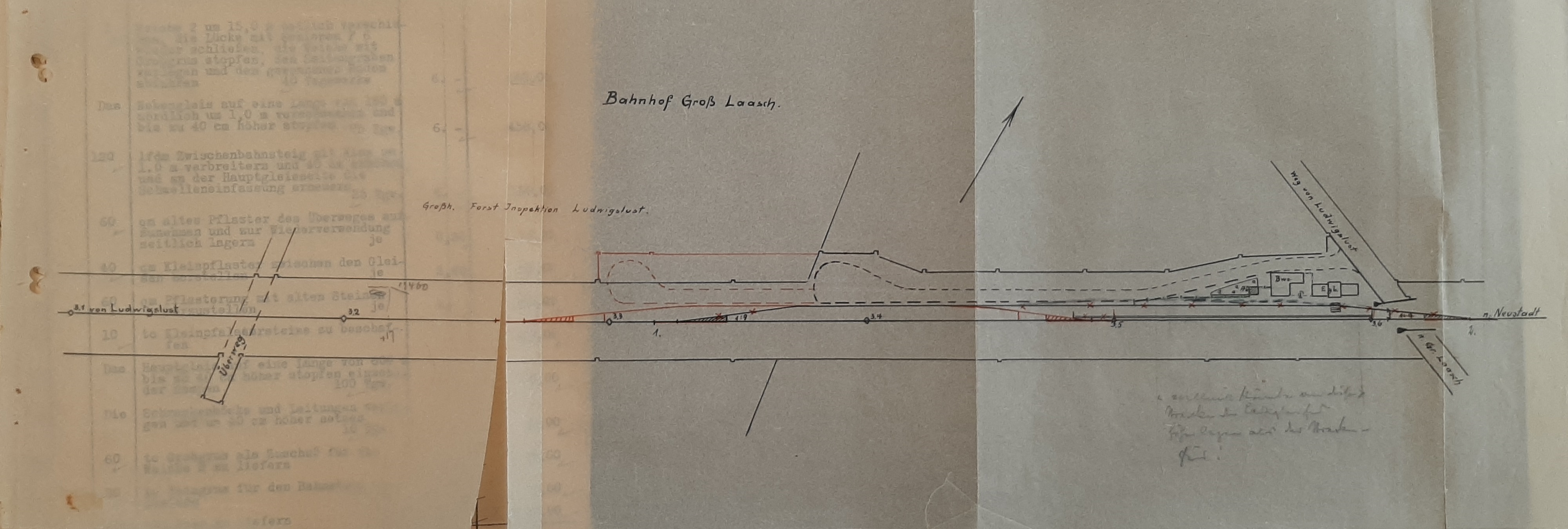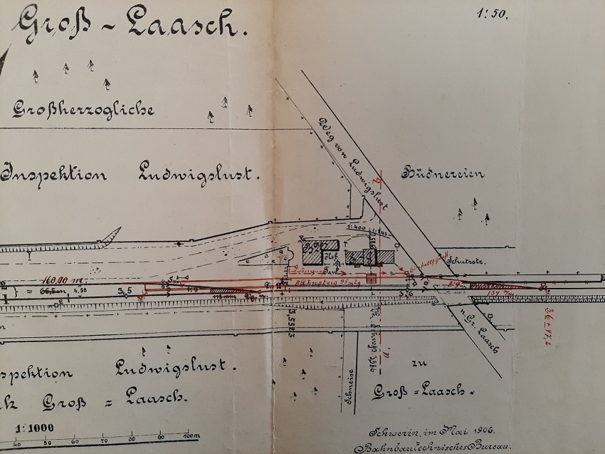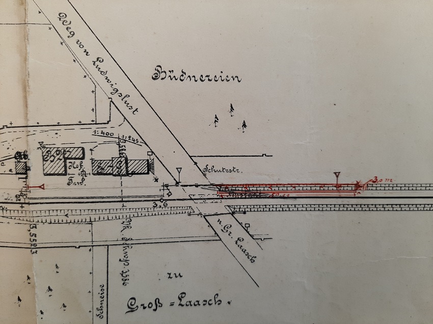 Groß Laasch sollte zu einem Kreuzungsbahnhof ausgebaut werden. Dafür musste das bestehende