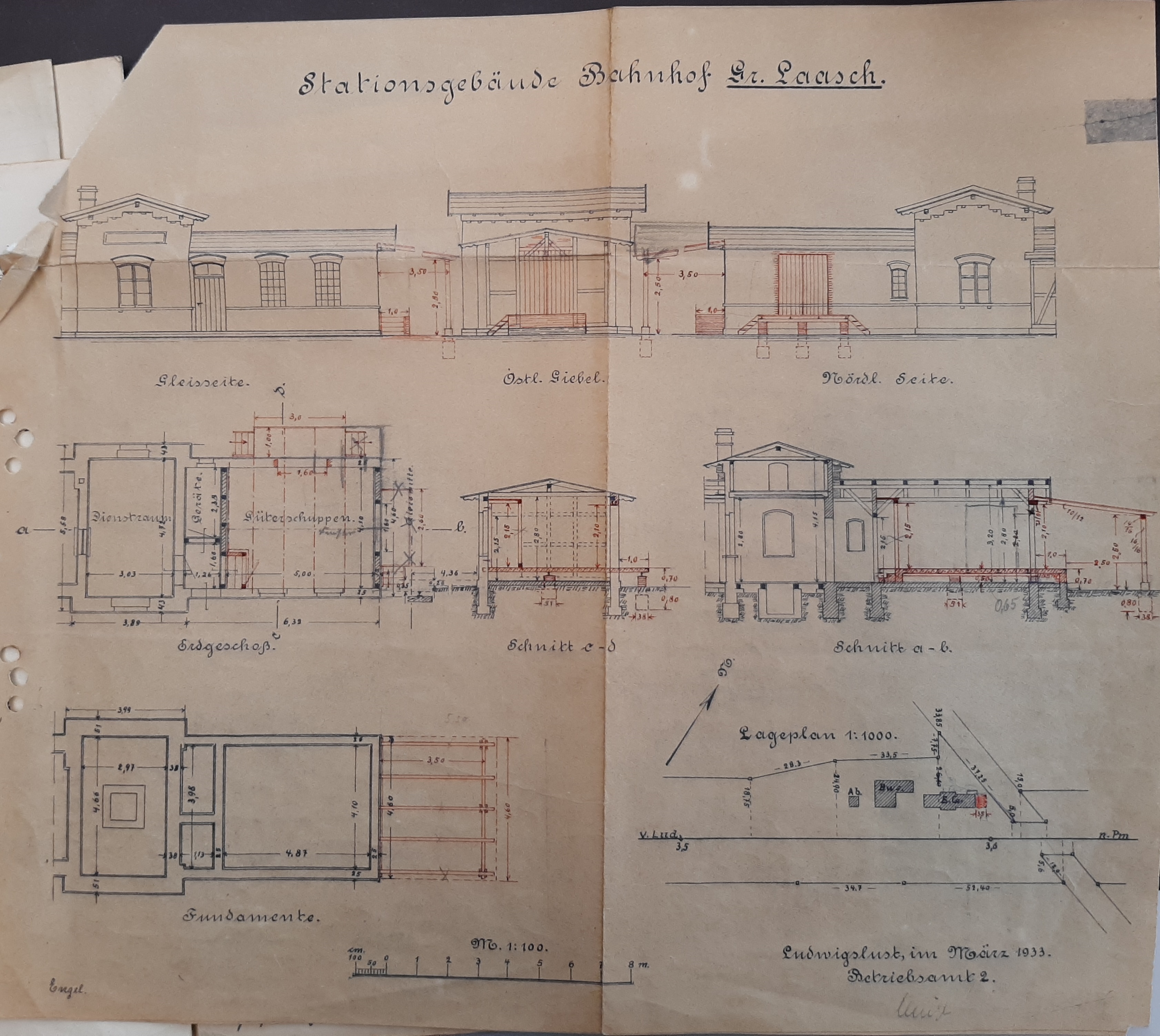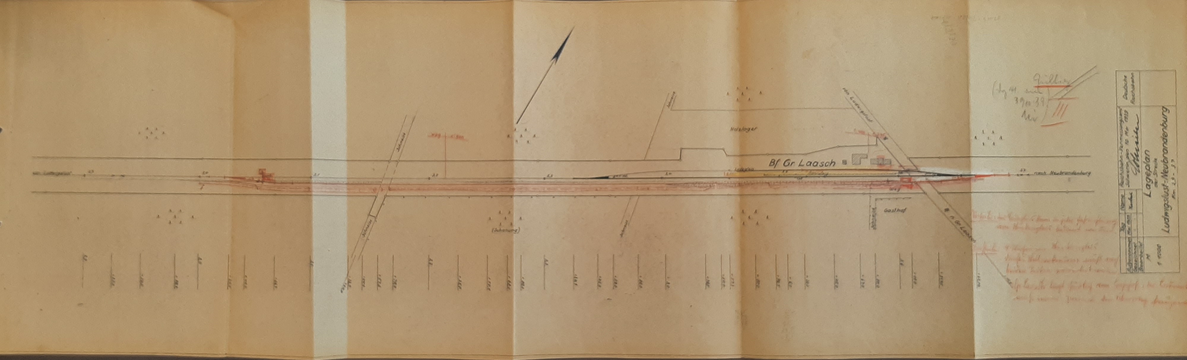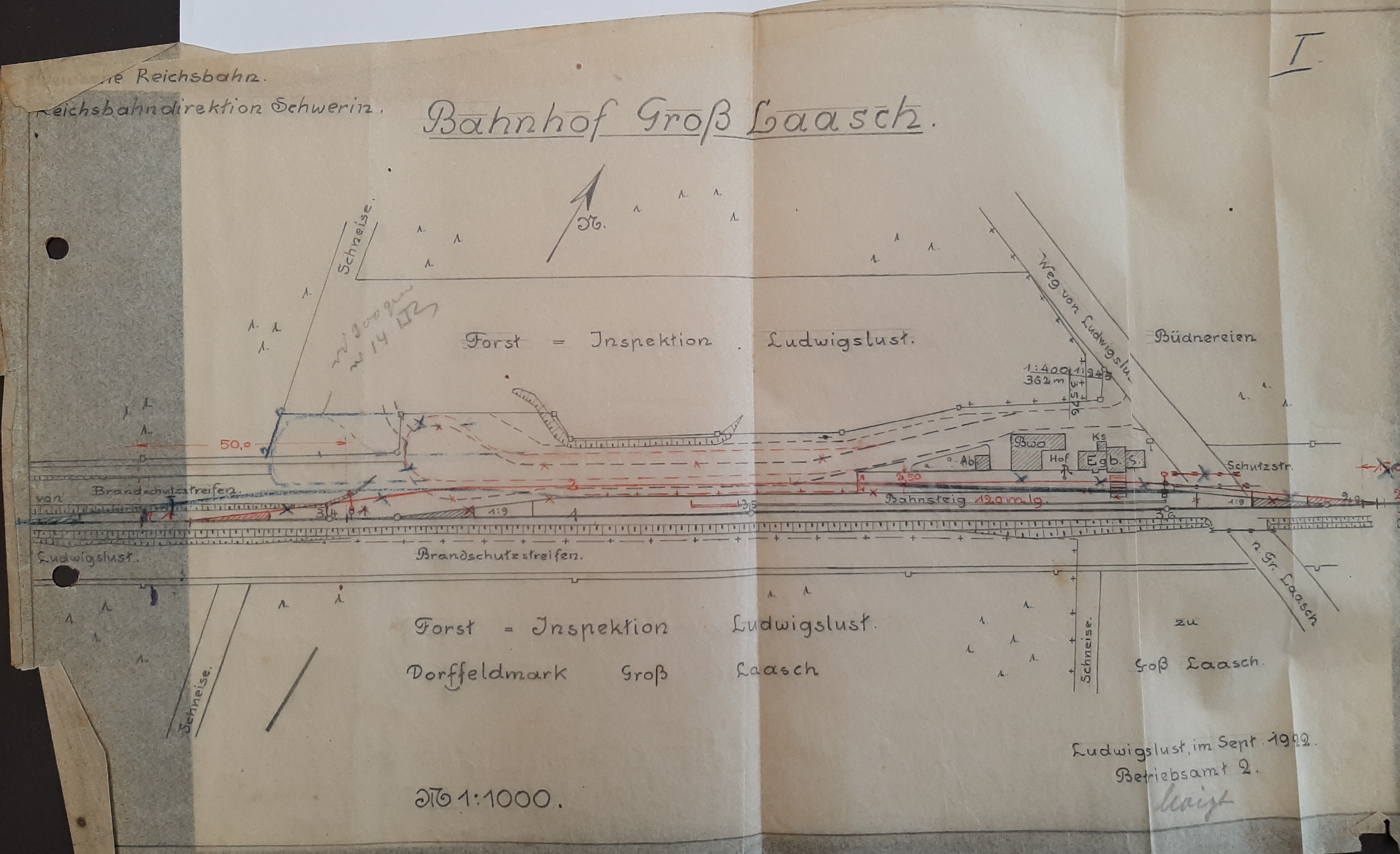 Groß Laasch sollte zu einem Kreuzungsbahnhof ausgebaut werden. Dafür musste das bestehende