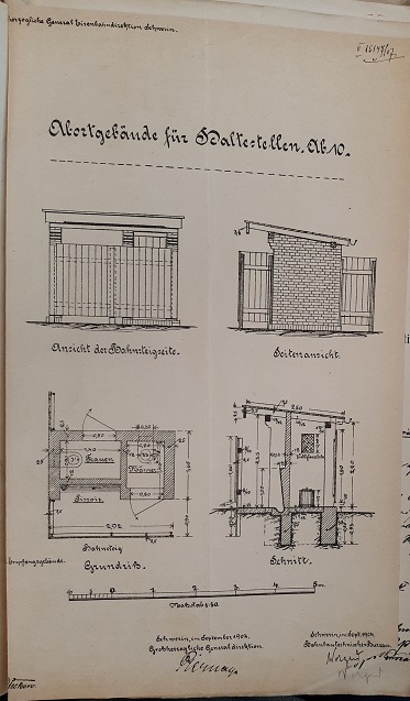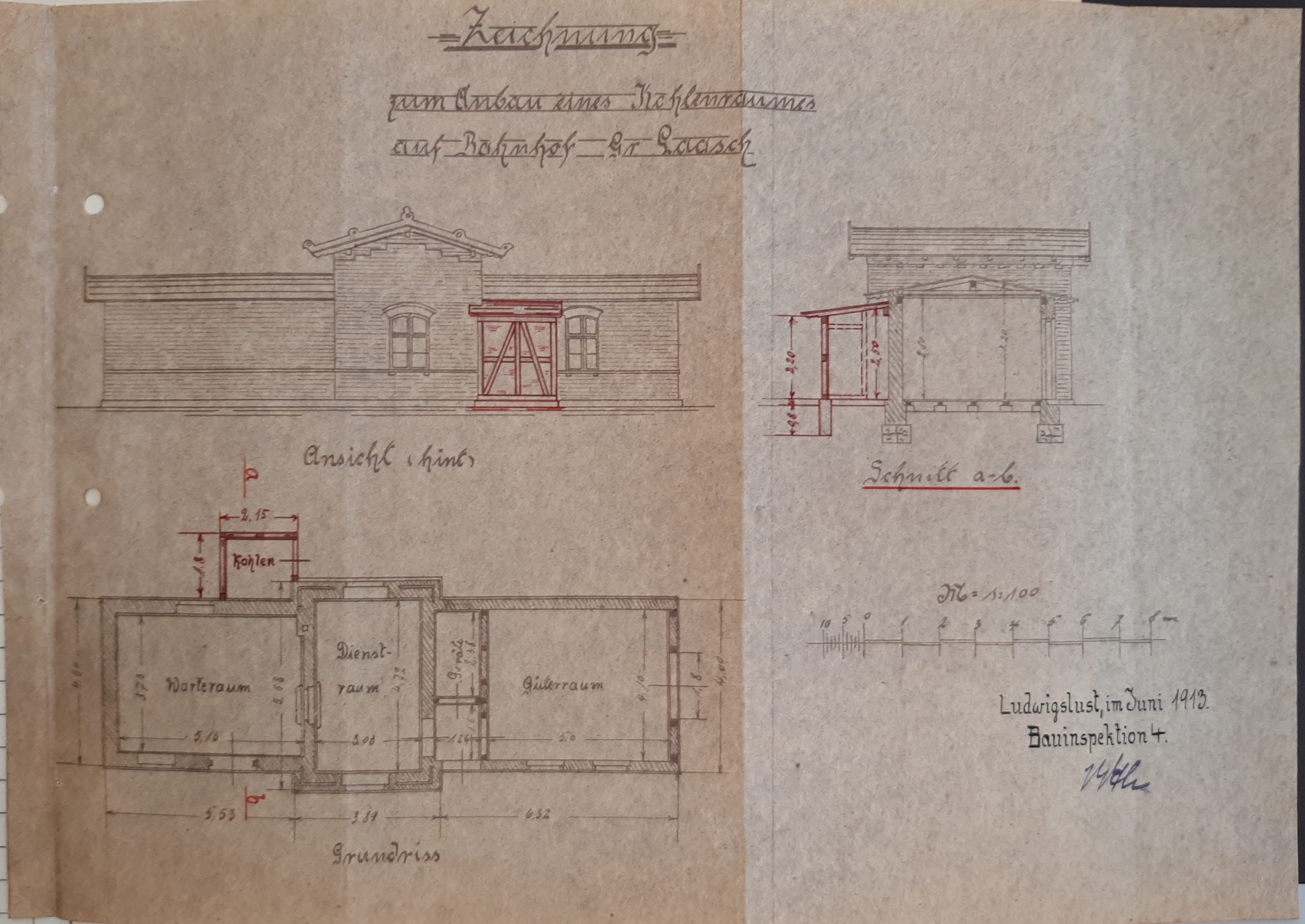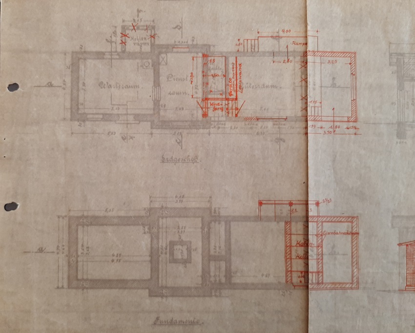 1913 wurde geplant, an das kleine Stationsgebäude einen Vorratsraum für Kohlen anzubauen, was