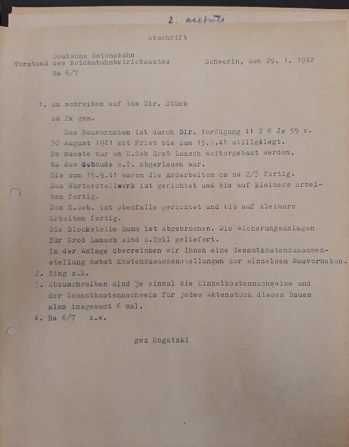 Kreuzungsgleis. Das Bauvorhaben (Ausbau zum Kreuzungsbahnhof) wurde mit Verfügung vom 30.08.1941 stillgelegt, anscheinend jedoch noch fertiggestellt.   |