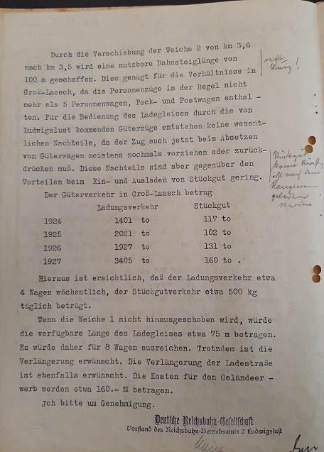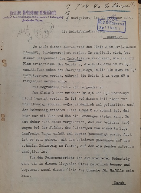 Groß Laasch" die Situation so: "Dringend vernotwendigt sich die Verschiebung hiesiger Weiche