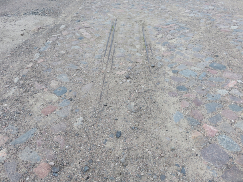 | ehemaliges Gleis, das beidseitig von einer Betonkante eingefasst ist |