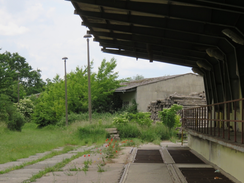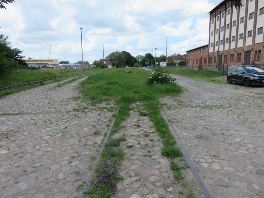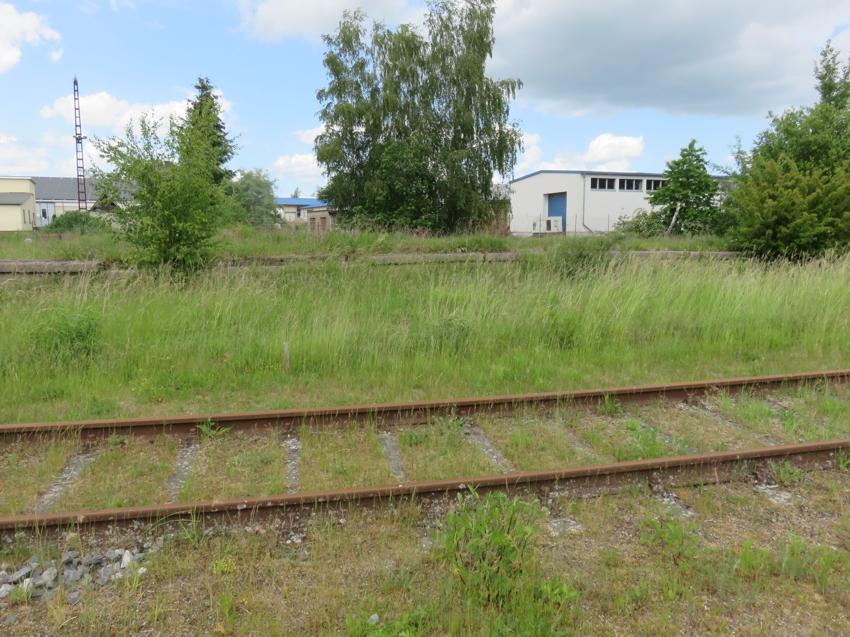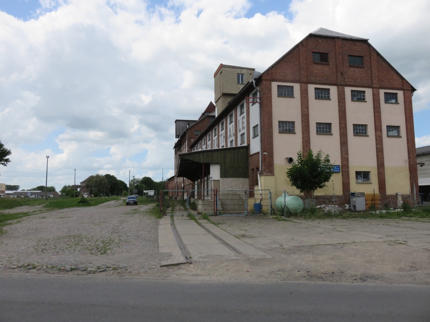 | Vom Getreidespeicher aus verläuft das ehemalige Streckengleis noch einige hundert