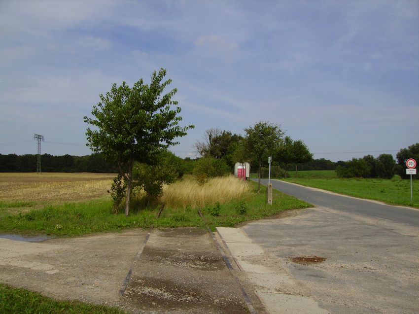| Vor dem großen Baum stand anstelle der Büsche einst die gemauerte Wartebude. |