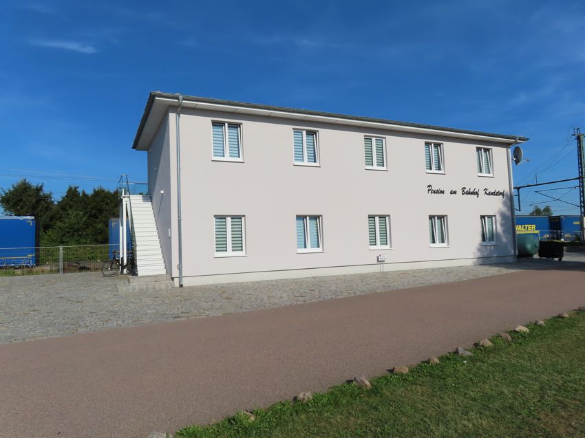 | die neugebaute Pension fast direkt am Gleis 4 |