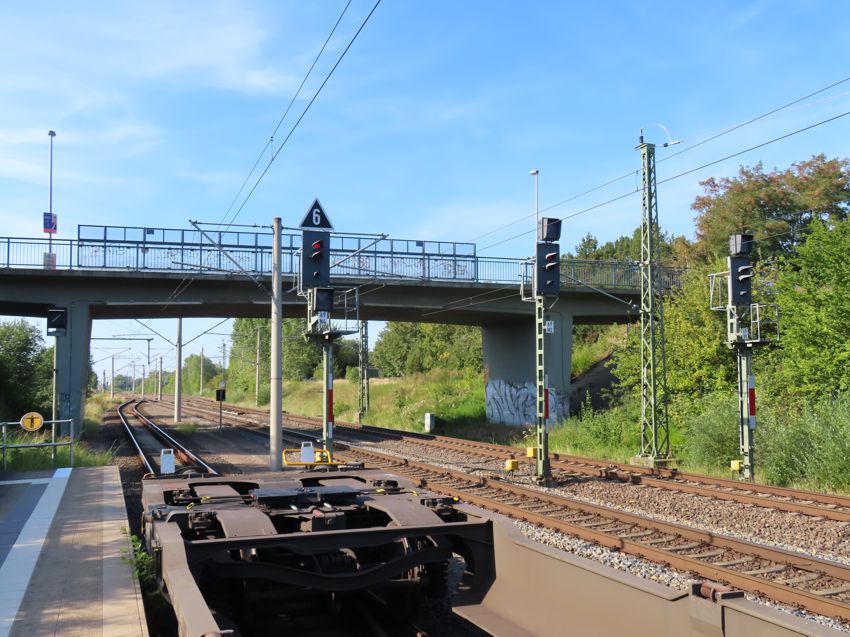 | Blick in Richtung Laage; Der Zug wartet nun die Überholung eines IC ab. |