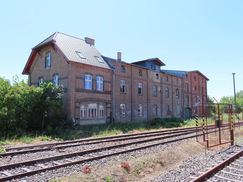 | Schräg gegenüber des Bahnhofsgebäudes steht dieses alte Industriegebäude mit einem