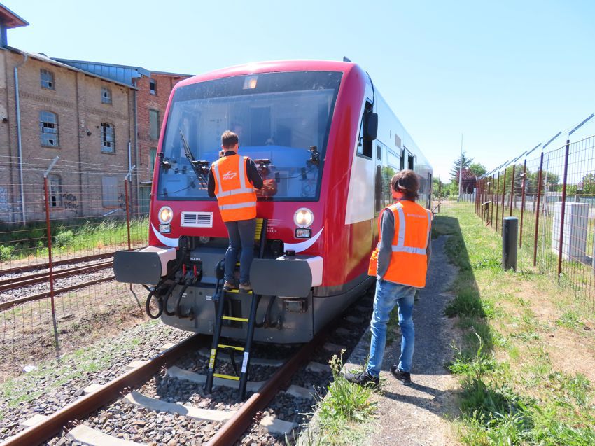 für die Rückfahrt auf der Frontscheibe des VT 650.06 der HANS angebaut, geputzt und eingestellt. |