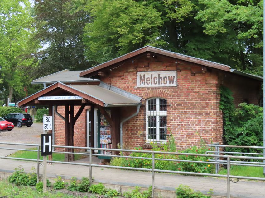 | Melchow liegt südwestlich von Eberswalde im waldreichen Barnim. Das Stationsgebäude gehört heute dem Verein Naturparkbahnhof Melchow e.V. |