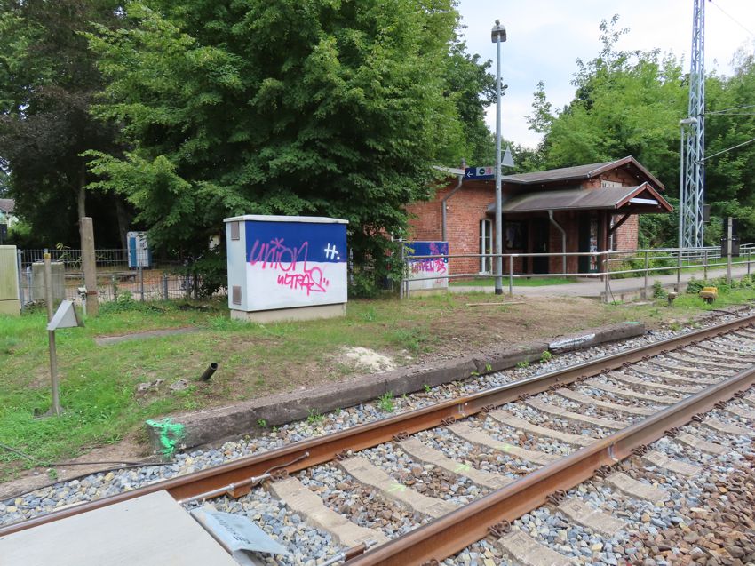| Haltepunkt in Brandenburg (ehemalige Blockstelle mit Haltepunkt)   Strecke: Berlin Stettiner Bf - Angermünde - Szczecin/Stettin [Berlin-Stettiner Eisenbahn-Gesellschaft - BStE] |