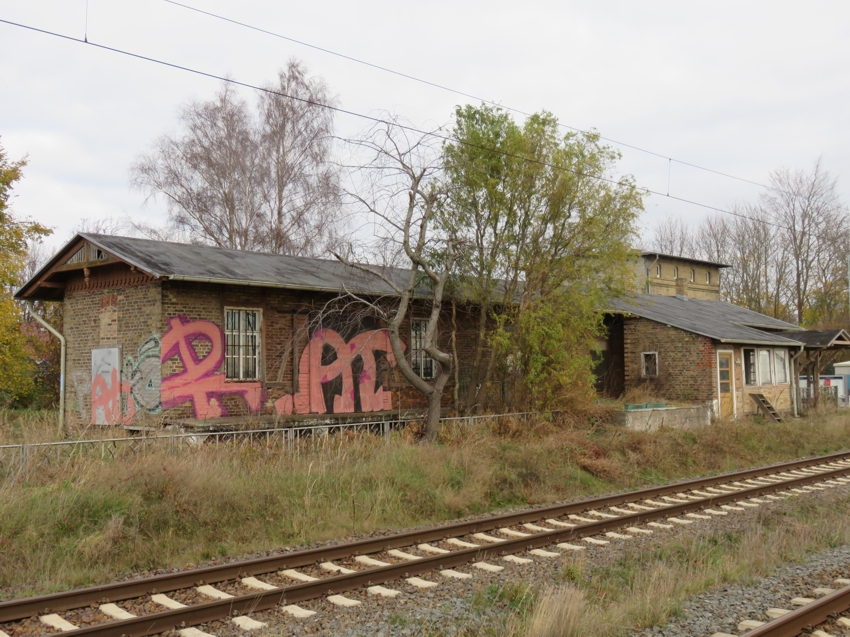 Das alte Stellwerk steht sicher schon seit Abschaffung des Bahnhofs leer. Rechts