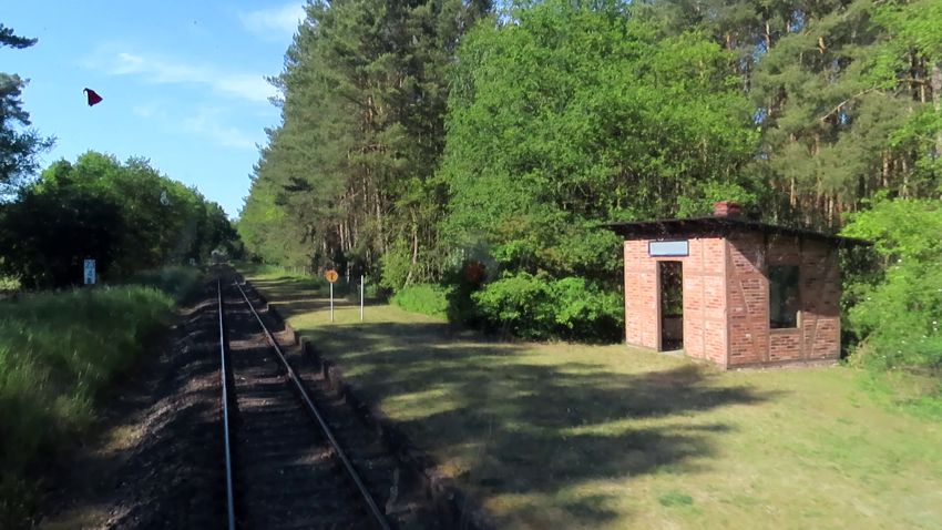| Der Haltepunkt liegt einsam in der Prignitzer Landschaft rund zwei Kilometer