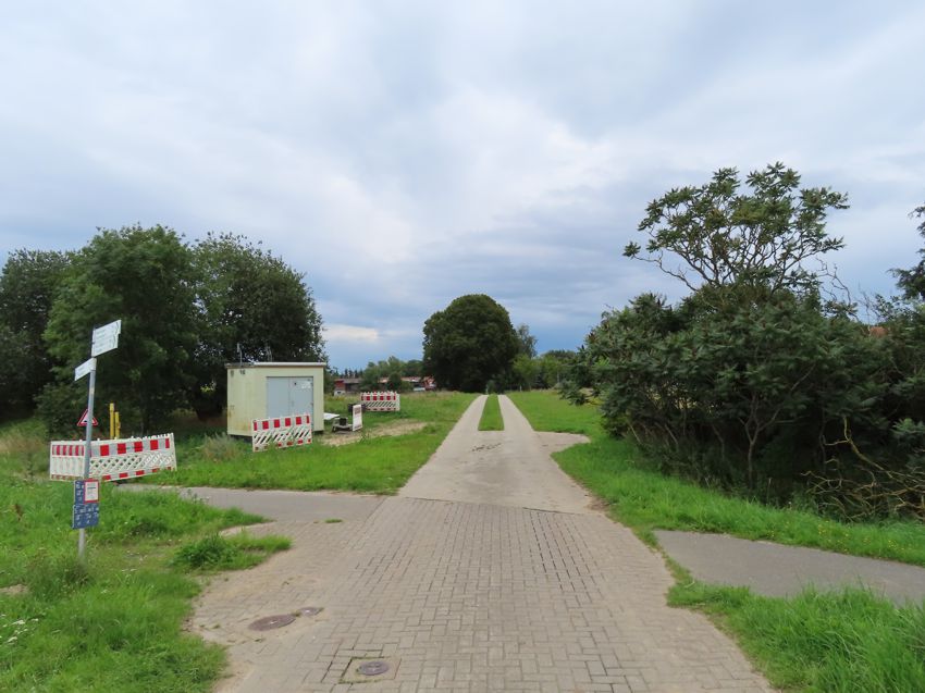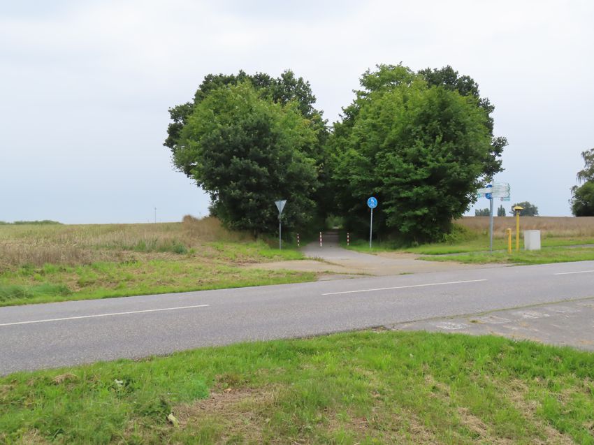 | Der ehemalige Wegübergang von Oberschlag kommend zum Dorf; Links ging es weiter nach Rekentin, rechts nach Tribsees |