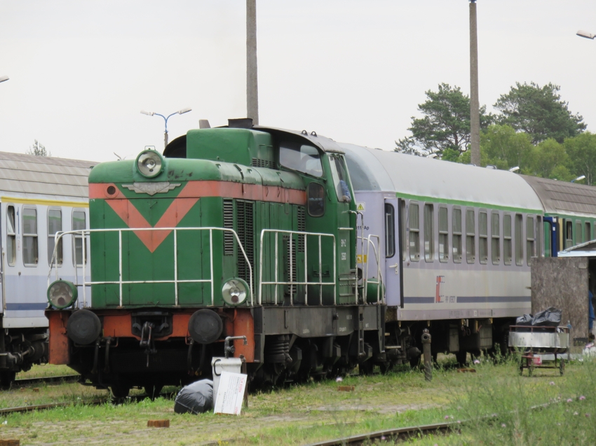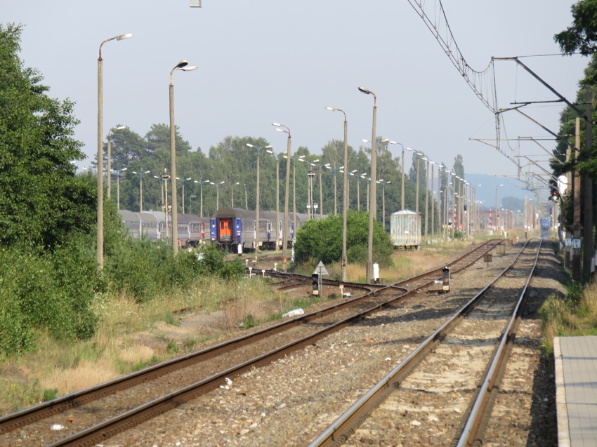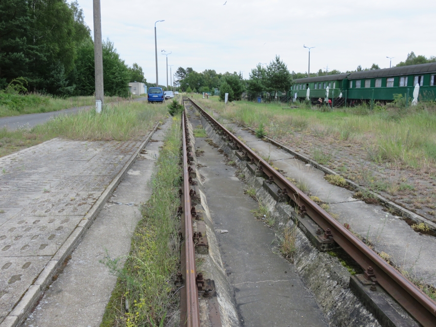 größeren Usedomer Teil. Östlich des Haltepunktes liegt der Betriebsbahnhof von Swinemünde, auf dem u.a. die IC-Züge behandelt werden. Außerdem stehen dort mehrere alte Bauwohnwagen, von denen man anscheinend auch welche zur Übernachtung mieten kann. Eine ziemlich skurrile Siedlung. |