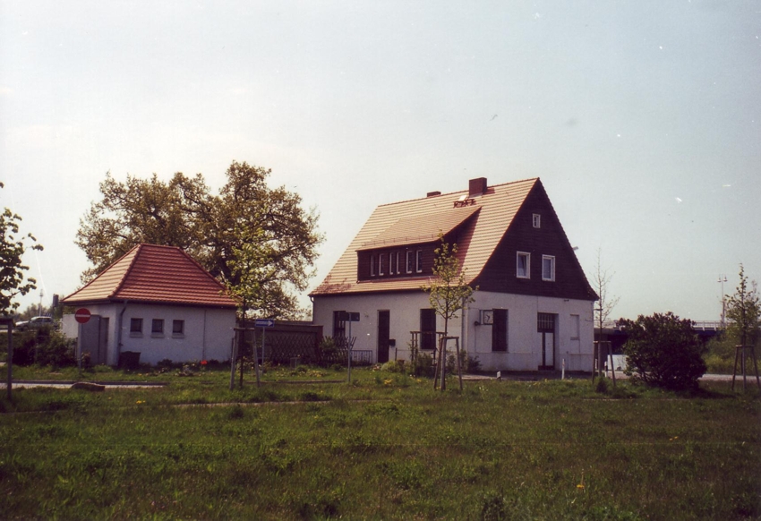 | ein weiterer Blick zum einstigen Empfangsgebäude vom Zugangsweg zum Haltepunkt |
