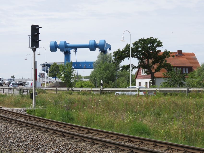 die Straßenbrücke zum Bahnhof Wolgast Hafen gehen. Ersetzt wurde er durch den neuen Haltepunkt Wolgaster Fähre. |