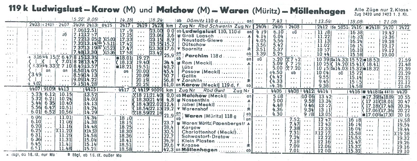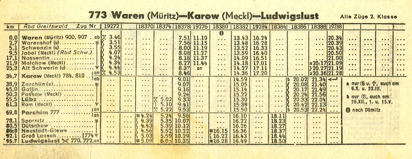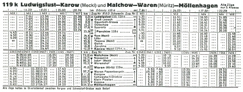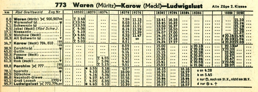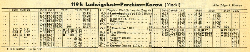 - Nach 1945 wurden die Streckenabschnitte Karow - Malchow und Kargow - Neubrandenburg als Kriegsreparation abgebaut.