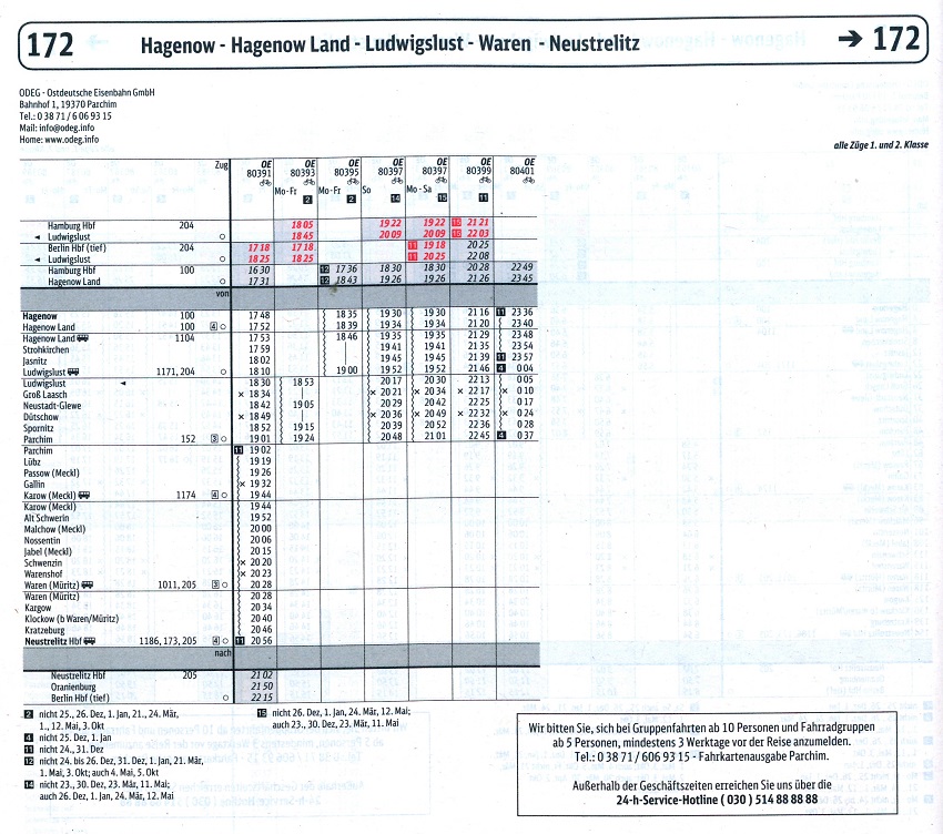 | Fahrpläne Ludwigslust - Waren (Müritz) - Neubrandenburg |