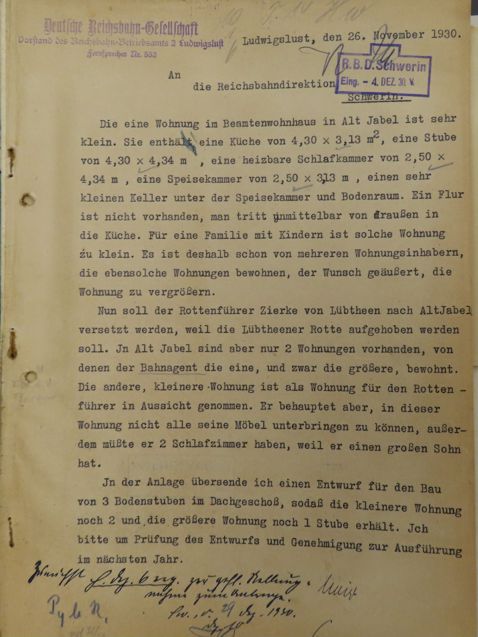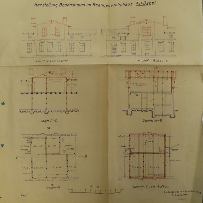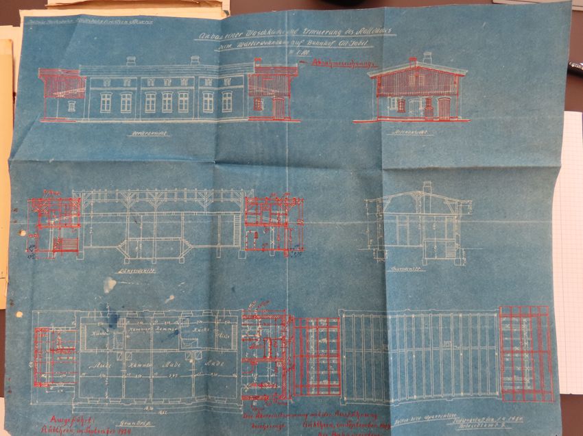 Erweiterung des Beamtenwohnhauses neben dem Stationsgebäude geht. Auch Zeichnungen waren dabei. Das Beamtenwohnhaus steht ebenfalls noch und wird nach wie vor bewohnt. |