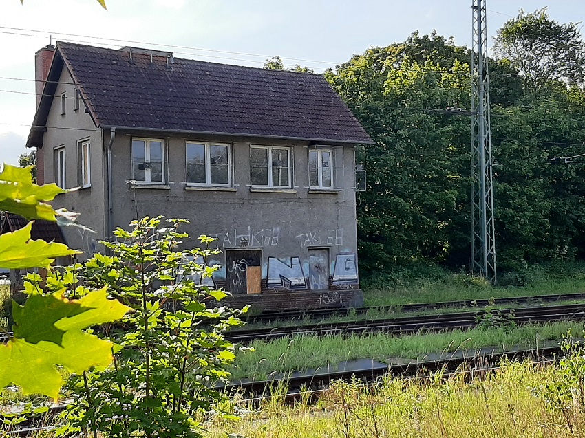 | entgegengesetzte Blickrichtung: zwischen dem Bü-Schalthaus und dem Baum lag das verlief das o.g. MPSB-Gleis | ||||||||||||||||||||||||||||||||||||||||||||||||||||||||||||||||||||||||||||||||||||||||||||