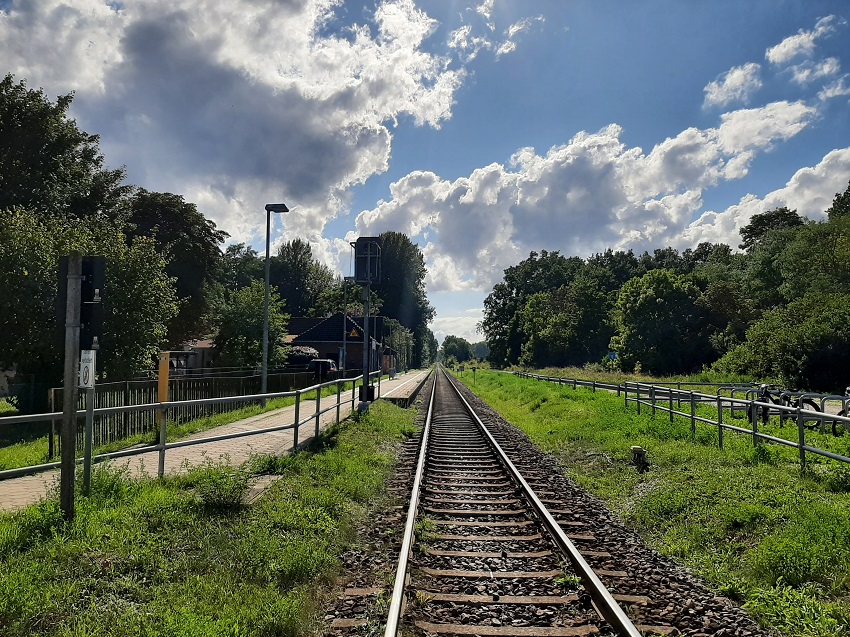 | Blick in Richtung Züssow; links das ehemalige Stationsgebäude |