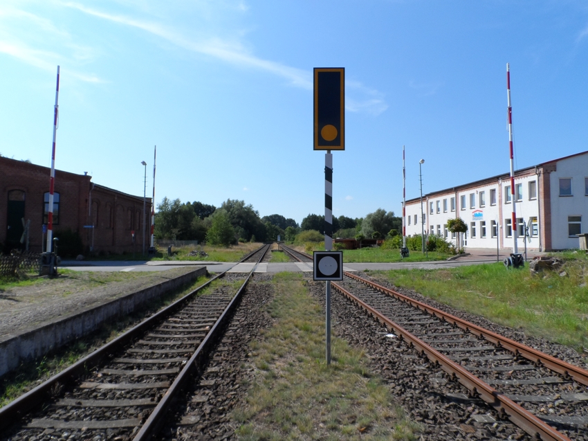| ... und Blick in Richtung Karow; ebenfalls mit Bü 0 Signalwiederholer für den sichtbaren BÜ |