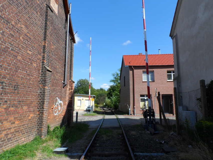 | Blick von der Laderampe in Richtung Hoppenrade. Die langen Schrankenbäume