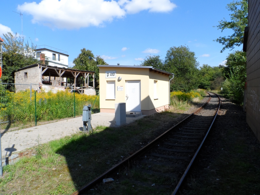 | ... und in Richtung Hoppenrade. Po 410 ist zwar noch vorhanden, aber die Scheiben sind schon zum Teil eingeworfen worden. |