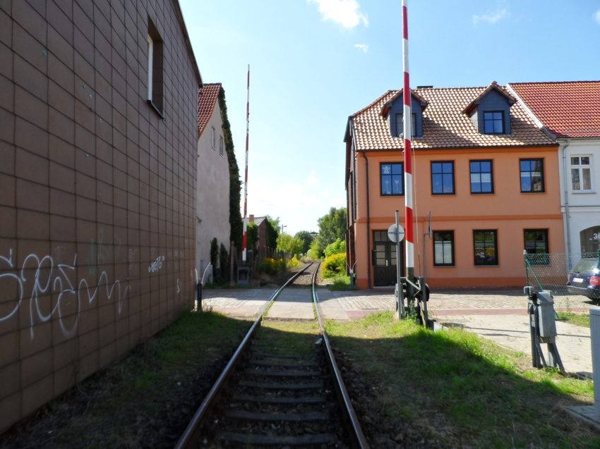 | noch einmal der Blick vom Posten in Richtung Bahnhof mit der engen Durchfahrt |