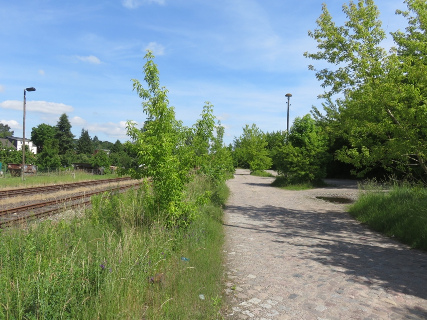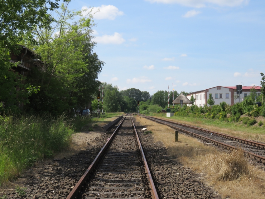 | Blick in Richtung Hoppenrade. Die verbliebenen Gleise 2 (rechts) und 3 (links) sind