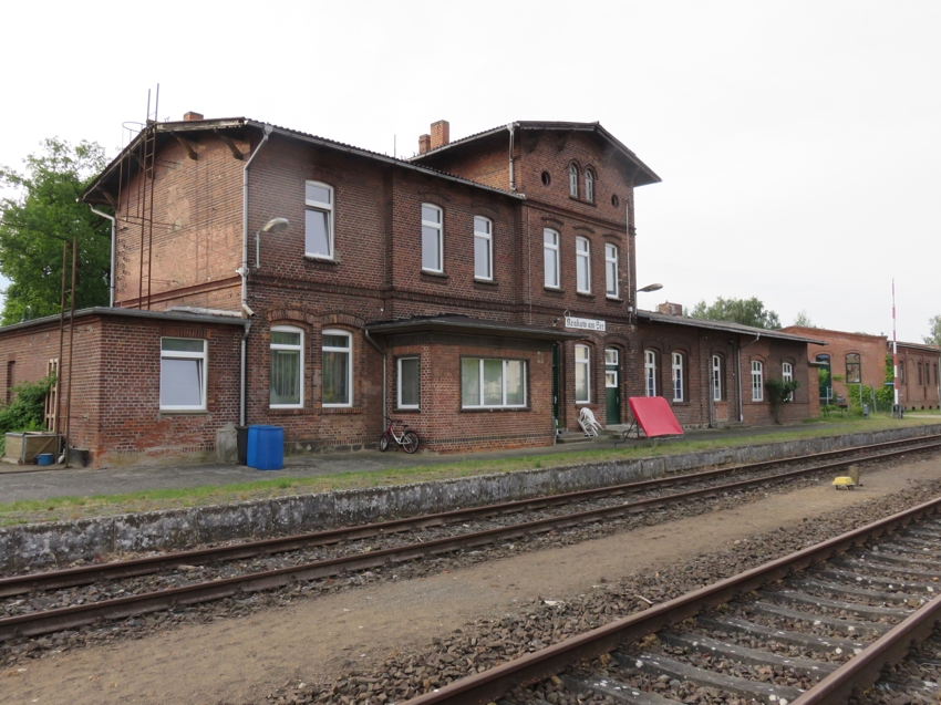 Gründen eingestellt wurde, obwohl ein Luftkurort m.W. mit der Eisenbahn erreichbar sein muss. Der ehemalige Bahnhof verkam ziemlich nach der Stilllegung des Abschnittes Karow - Priemerburg. Ende der 2000er Jahre wurde die Strecke durch die damalige PEG wieder in Betrieb genommen, jedoch hat sich bis heute kein Regelverkehr ergeben. Seit der Wiederinbetriebnahme der Strecke ist der einstige Bahnhof nur noch eine Haltestelle. Die einstige elektrische Sicherungstechnik wurde komplett zurückgebaut, auch das elektromechanische Stellwerk mit dem kombinierten Gs II DR-Pult. Einige Jahre wurde der Bahnhof probeweise in der Hauptsaison an Wochenenden mit Ausflugsverkehr angefahren. |
