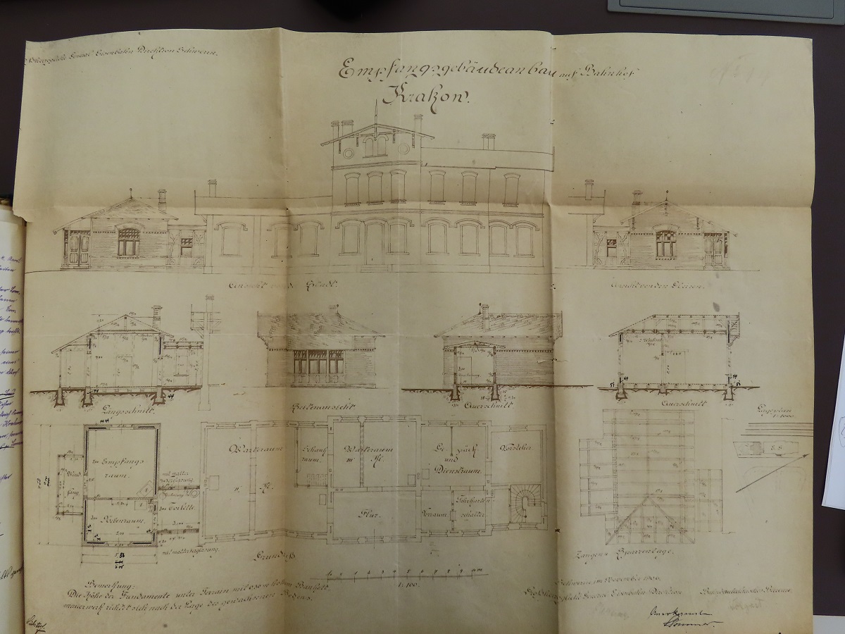 | Entwurf zur Vergrößerung des Stationsgebäudes (Straßenansicht) |
