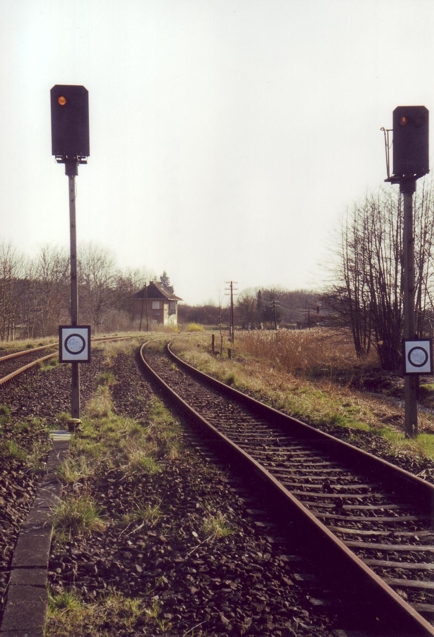| Blick in Richtung Hoppenrade mit Bü 0 Signalwiederholer für Posten 410 |