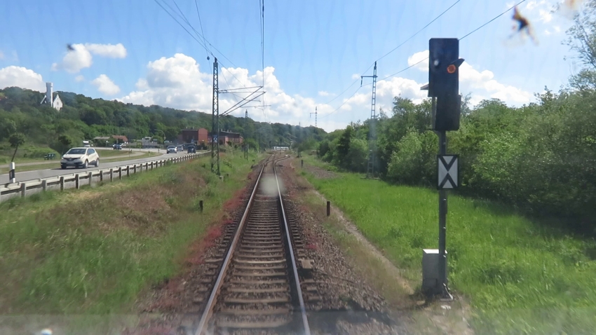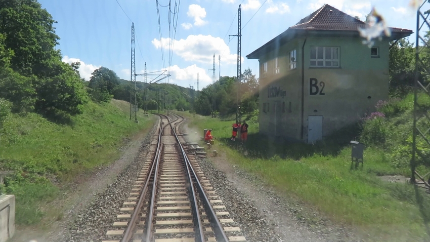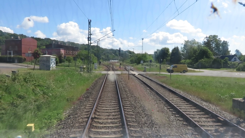 | kurz vor dem BÜ; links dahinter das ehemalige Postenhäschen |
