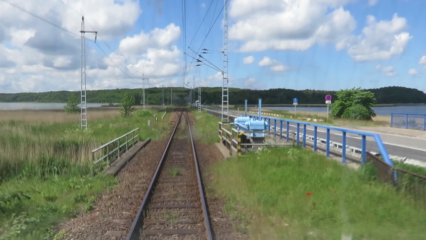 | Kurz bevor die Zweigleisigkeit beginnt noch ein kurzer Blick auf die beiden Bodden. |