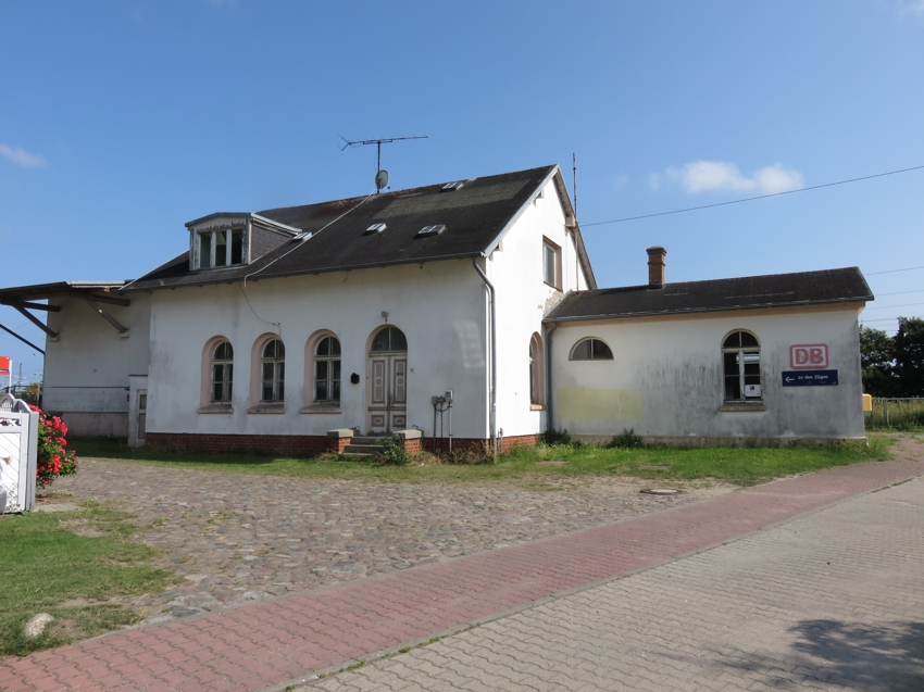 | Links steht das ehemalige Stationsgebäude. Zwei Bahnsteiggleise verliefen bis zum Umbau des Bahnhofs dort entlang in einem langen Bogen bis zum Stellwerk B2. |