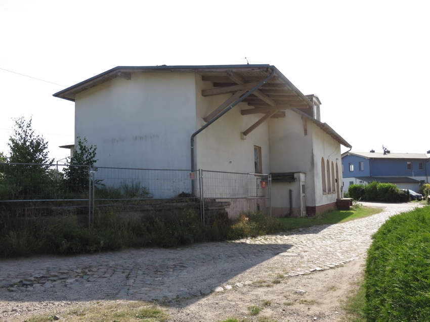 | ehemaliger Güterschuppen; im Hintergrund noch einmal das Stellwerk B2 |