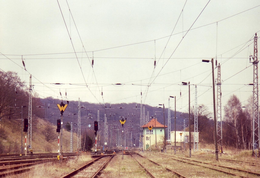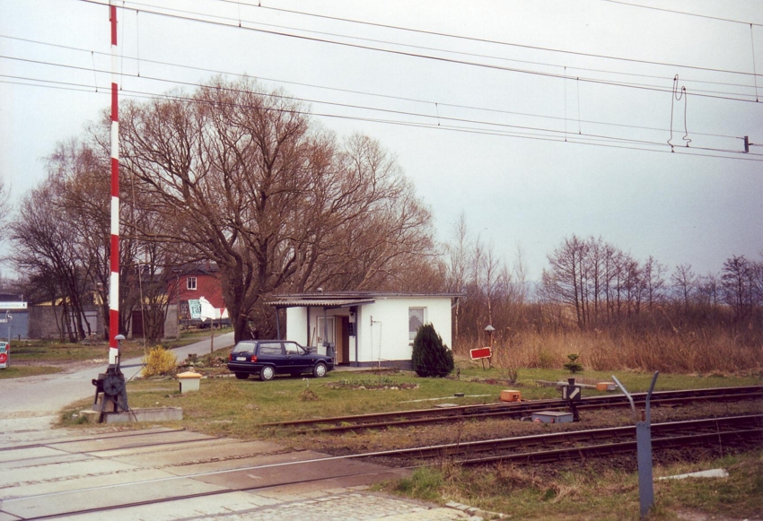 | vor dem BÜ, der bis zur Inbetriebnahme des ESTW durch einen Schrankenwärter gesichert wurde. |