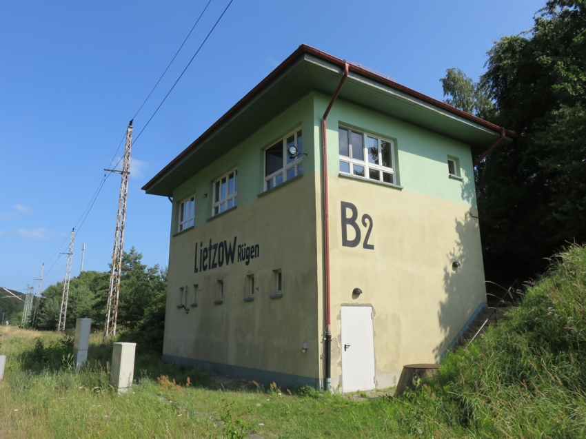 Jasmunder Bodden. Dadurch haben viele Bewohner einen Blick auf´s Wasser. Der Bahnhof besteht seit dem Umbau nur noch aus vier Hauptgleisen. Hier zweigt die Nebenbahn nach Binz ab. Lietzow ist der wichtigste Umsteigebahnhof auf der Insel. In Lietzow steht das ESTW, das den Bahnhof Lietzow sowie den Streckenabschnitt von Sagard bis Sassnitz und die Strecke nach Binz steuert. |