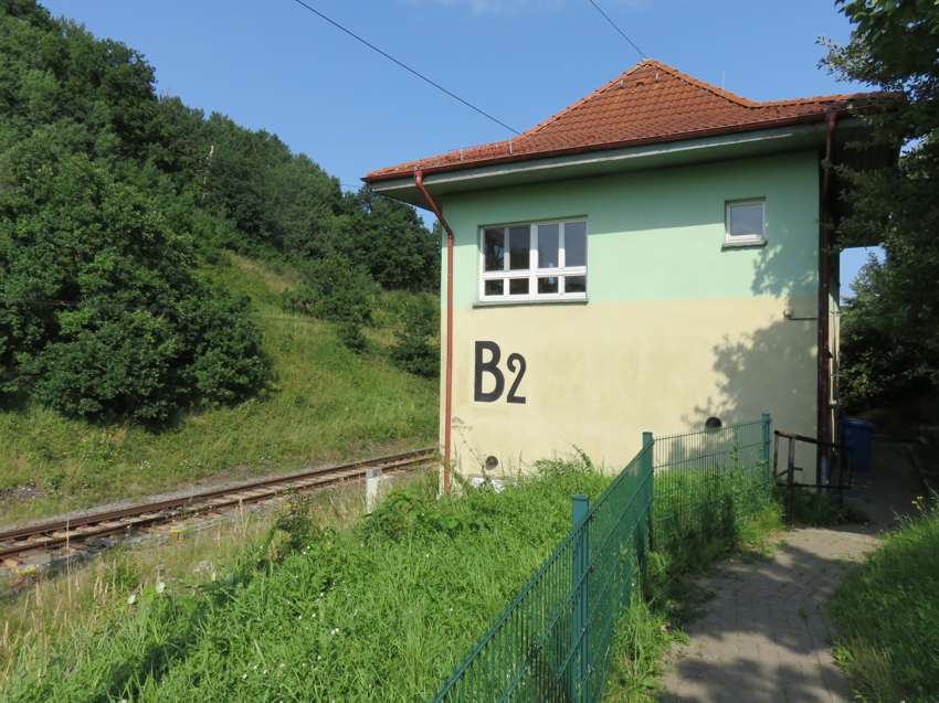 | In Richtung Bergen gab es bis zur ESTW-Inbetriebnahme diesen, heute noch gut erhaltenen, Schrankenposten. |